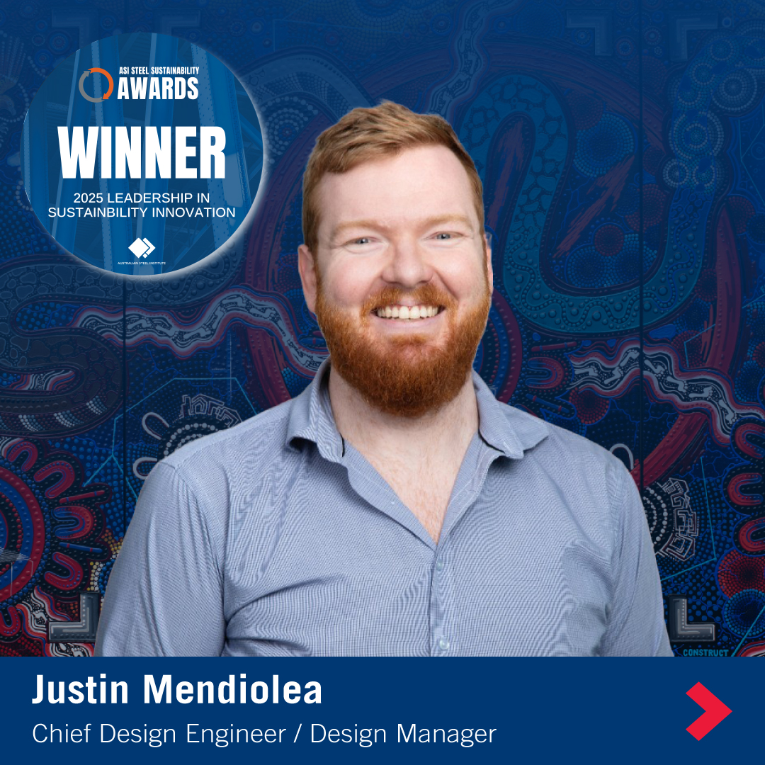 We are extremely proud to announce that Justin Mendiolea, has been awarded the Australian Steel Institute (ASI) Leadership in Steel Sustainability Innovation Award.